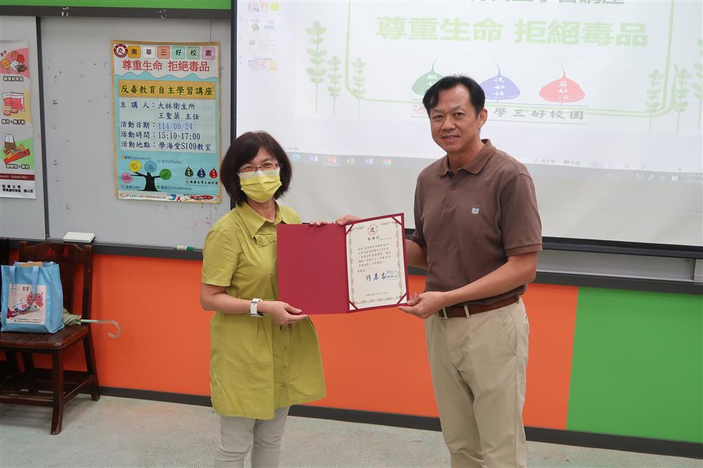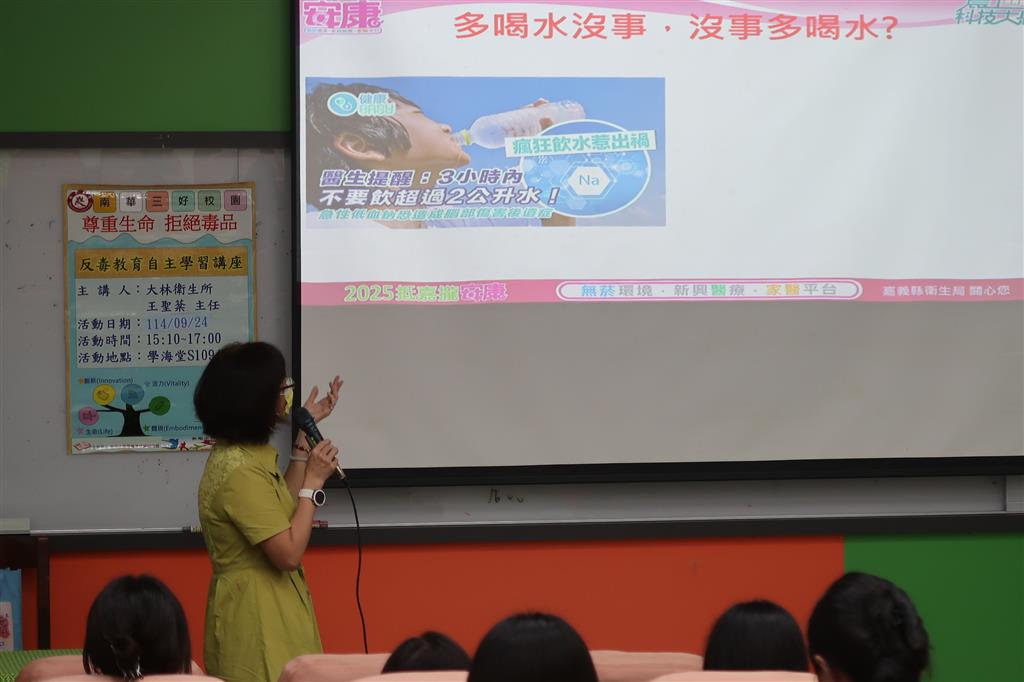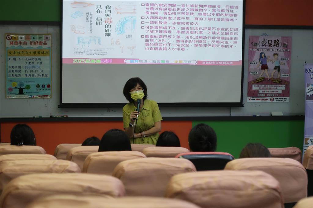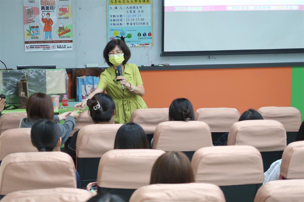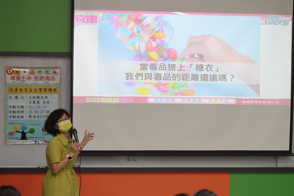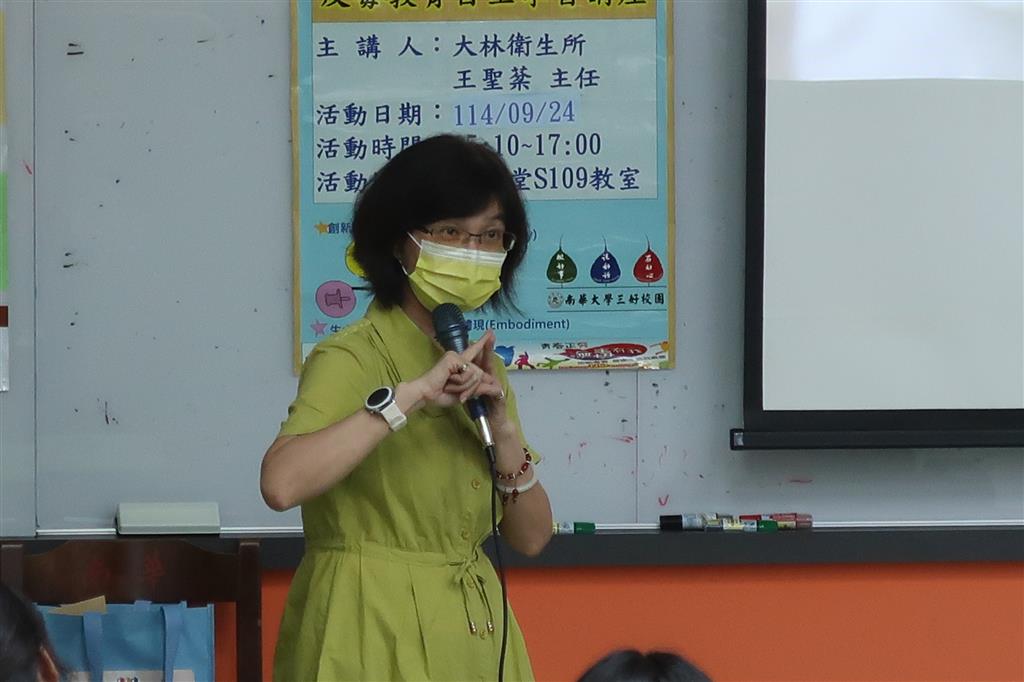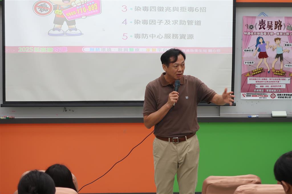 新興毒品竄台氾濫,讓涉世未深之青少年誤觸毒網,造成毒害一生。毒品危害社會有目共睹,毒品不僅造成個人身心健康的危害,更啃食國家醫療資源造成沉重負擔,已對國家安全造成嚴重威脅,反毒拒毒需從小家庭教育、校園防制及自己做起,參與反毒講座就是預防物質成癮的第一步。有鑒於此南華大學於114年9月24日辦理「尊重生命拒絕毒害」講座,邀請嘉義縣大林鎮衛生所王聖棻護理師擔任講師。