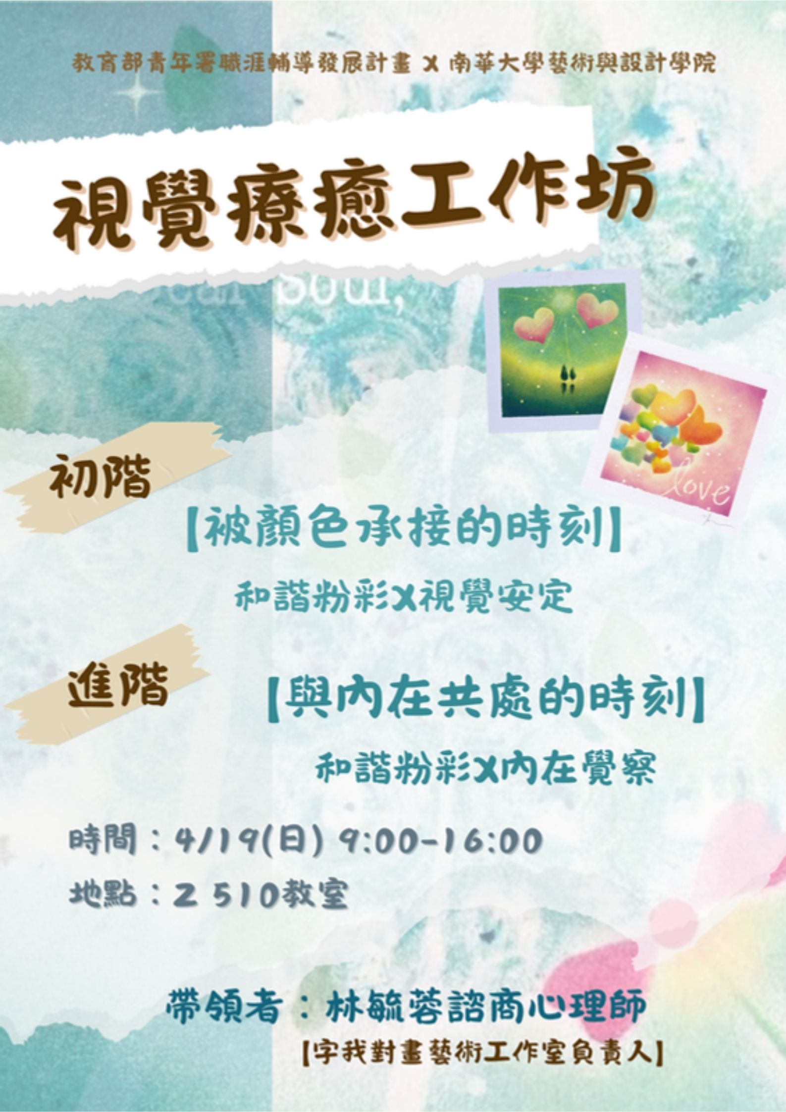 活動名稱(Activity Name):【藝術轉化力系列講座4】04/19 視覺療癒工作坊
